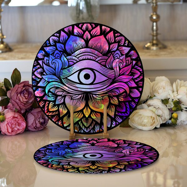 Realhomes Beyaz Zeminde Renkli Üçüncü Göz Motifli Modern 2’li Yuvarlak Servis Altlığı – Supla