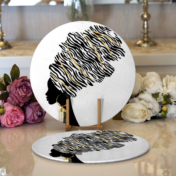 Realhomes Siyah Beyaz Zenci Kadın Motifli Modern 2’li Yuvarlak Servis Altlığı – Supla