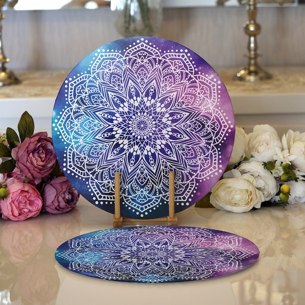 Realhomes Gökkuşağı Zemininde Beyaz Mandala Çizimli Modern 2’li Yuvarlak Servis Altlığı – Supla