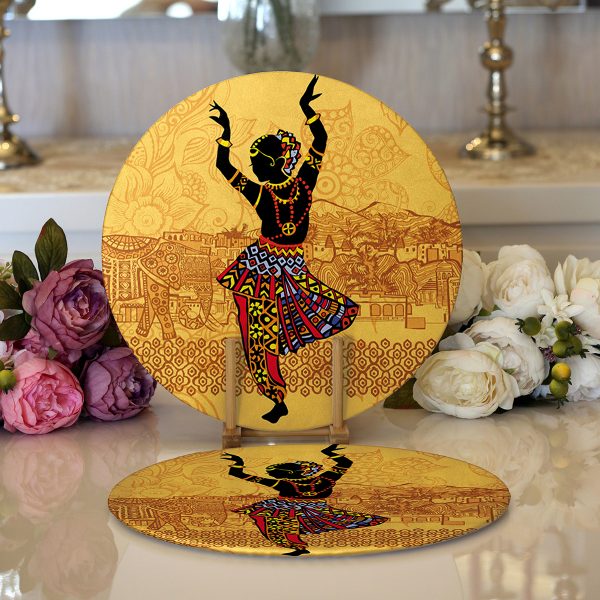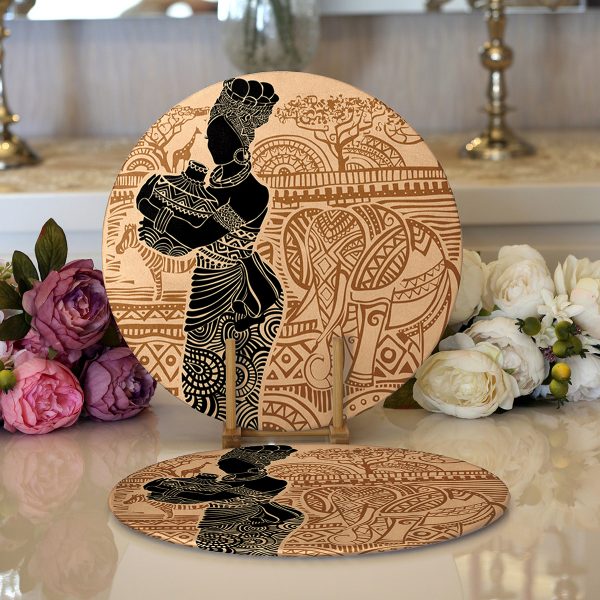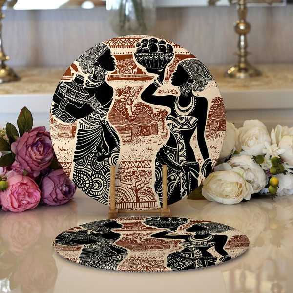Realhomes Etnik Desen Zeminli Afrika Kadın Motifli Modern 2’li Yuvarlak Servis Altlığı – Supla