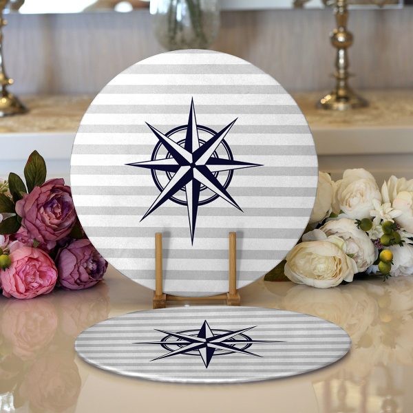 Realhomes Gri Beyaz Zeminde Pusula Desenli Dijital Baskılı Modern 2’li Yuvarlak Servis Altlığı – Supla