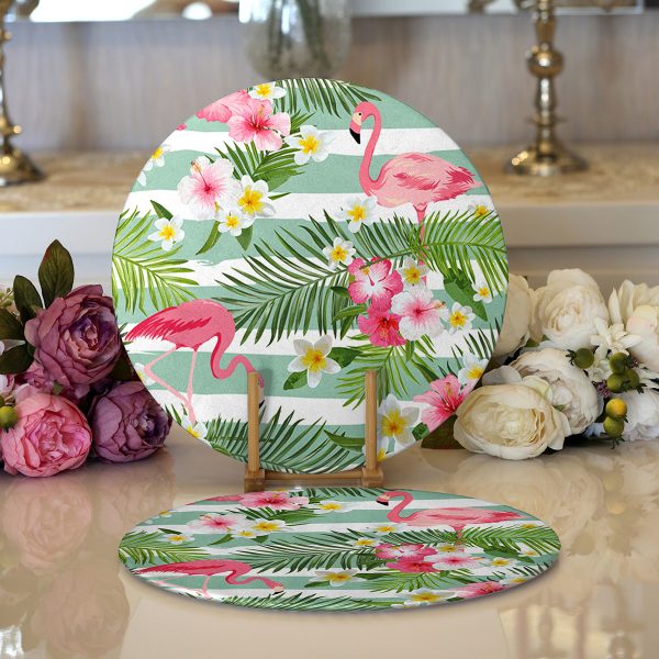 Realhomes Flamingo Desen Dijital Baskılı Modern 2’li Yuvarlak Servis Altlığı – Supla