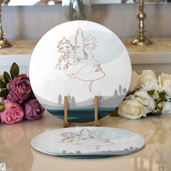 Realhomes Beyaz Zemin Üzerinde Manzara Motifli Bayan Silüeti Modern 2’li Yuvarlak Servis Altlığı – Supla