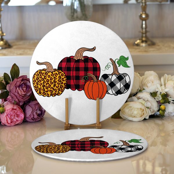 Realhomes Beyaz Zemin Üzerinde Ekoseli Balkabakları 2’li Yuvarlak Servis Altlığı – Supla