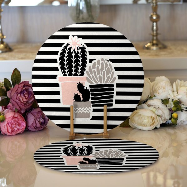 Realhomes Renkli Zemin Üzerinde Siyah Çizgili Kaktüs Desenli Modern 2’li Yuvarlak Servis Altlığı – Supla