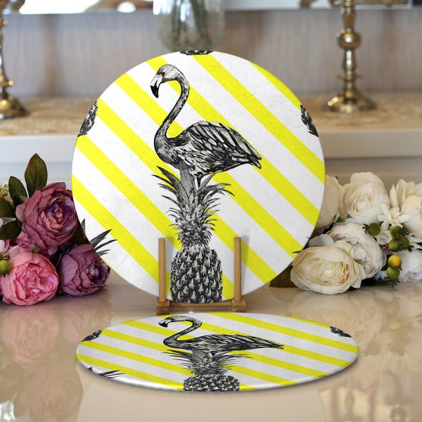 Realhomes Flamingo Temalı Dijital Baskılı Modern 2’li Yuvarlak Servis Altlığı – Supla