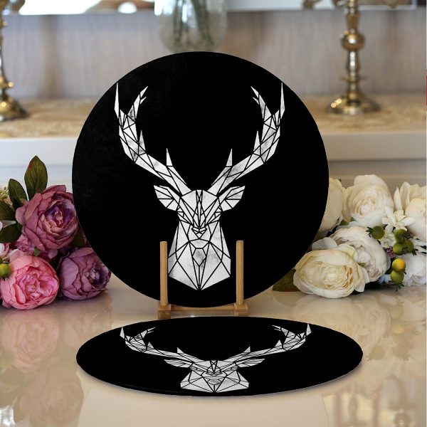 Realhomes Siyah Zeminde Mermer Motifli Geyik Tasarımlı Modern 2’li Yuvarlak Servis Altlığı – Supla