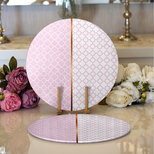 Realhomes Pembe & Beyaz Ogea Desenli Dijital Baskılı Modern 2’li Yuvarlak Servis Altlığı – Supla