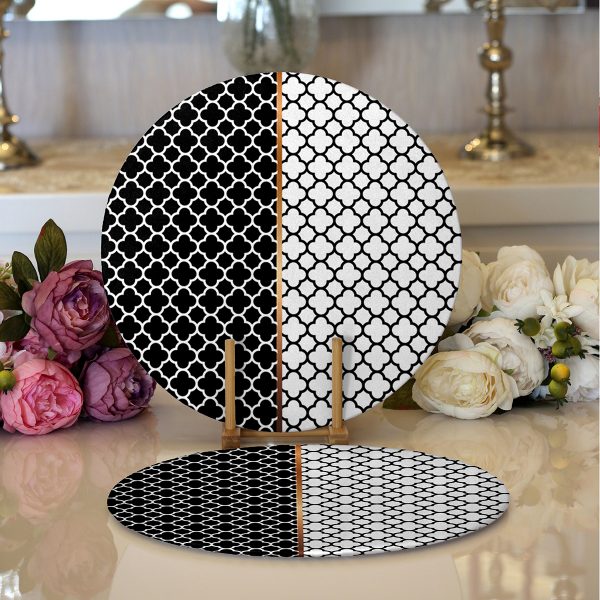 Realhomes Siyah & Beyaz Ogea Desenli Dijital Baskılı Modern 2’li Yuvarlak Servis Altlığı – Supla