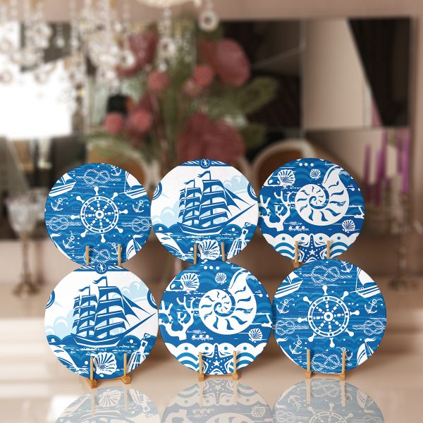 6’lı Mavi Denizci Temalı Özel Tasarım Servis Altlığı & Supla