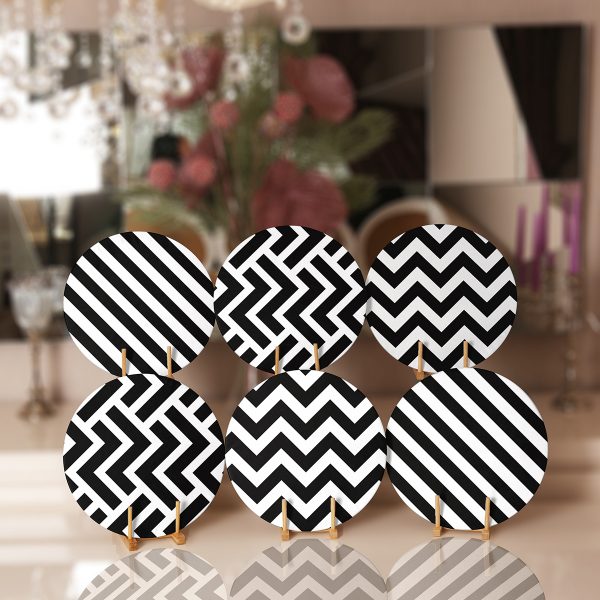 6’lı Siyah Beyaz Çizgili Geometrik Şekiller Servis Altlığı & Supla