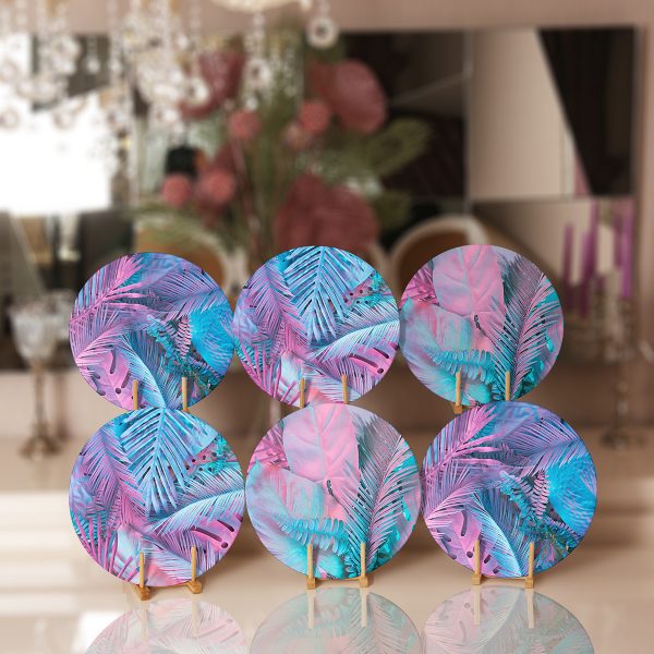 6’lı Özel Tasarım Neon Tropik Yaprak Motifli Servis Altlığı & Supla