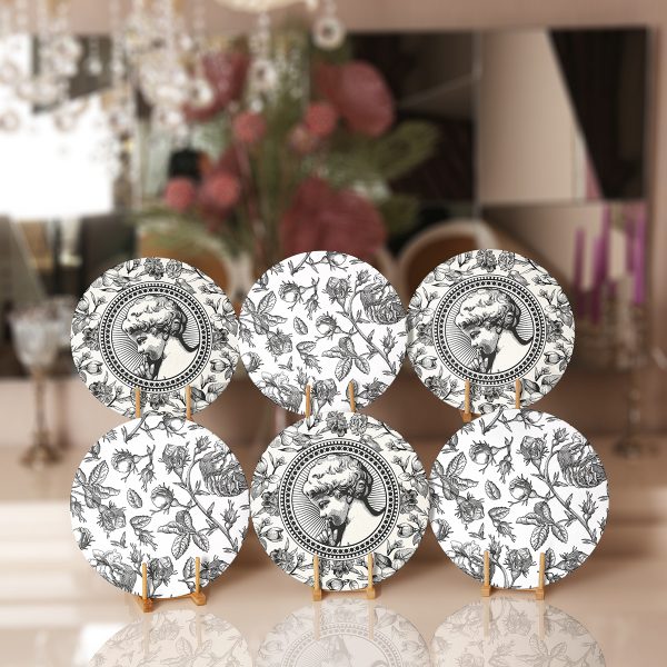 6’lı Beyaz Zemin Etnik Kara Kalem Çizimli Servis Altlığı & Supla
