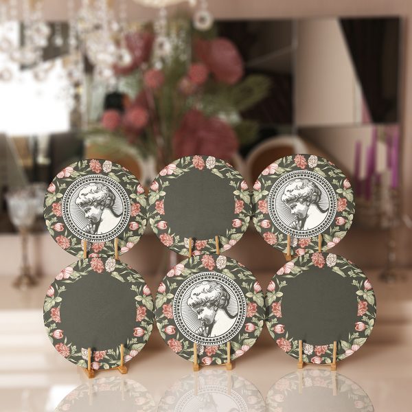 6’lı Karakalem Ağaç Tasarımlı Servis Altlığı & Supla