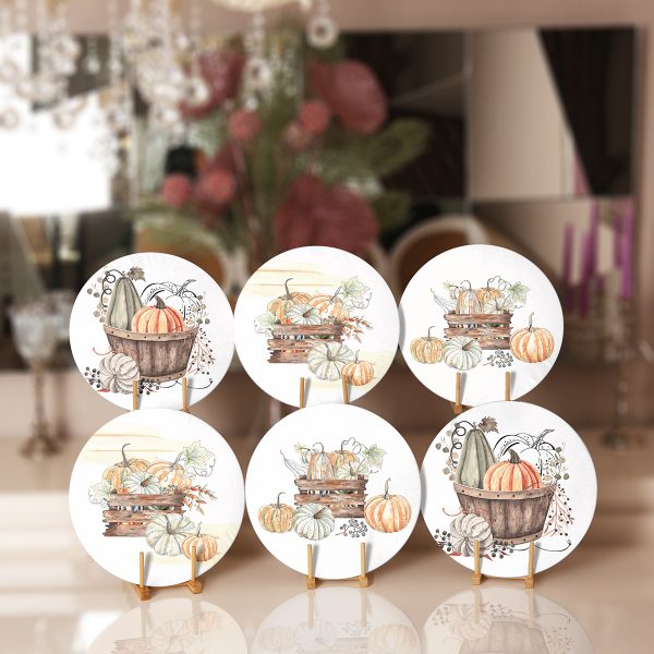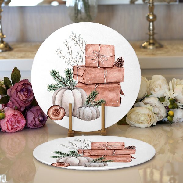 Özel Tasarım Kabak Temalı Dijital Baskılı Modern 2’li Yuvarlak Servis Altlığı – Supla