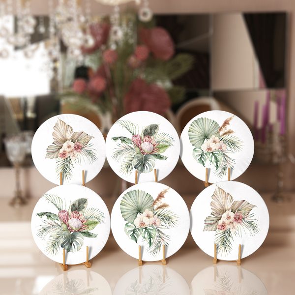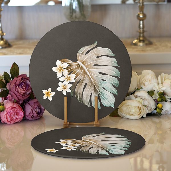 Egzotik Yaprak Tasarımlı Dijital Baskılı Dekoratif 2’li Yuvarlak Servis Altlığı – Supla