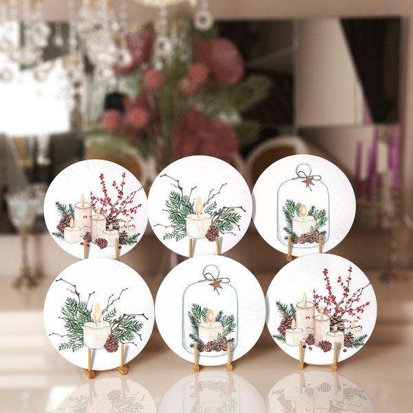 6’lı Kozalak & Mum Tasarımlı Servis Altlığı & Supla