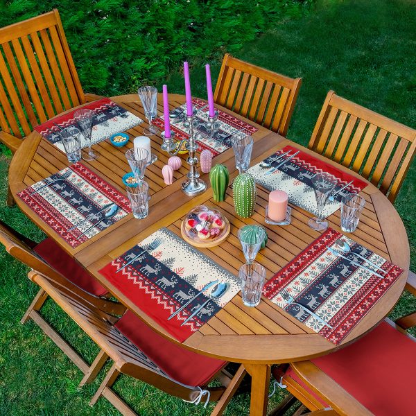 4’lü Ekose Geyik Desenli Amerikan Servis Seti