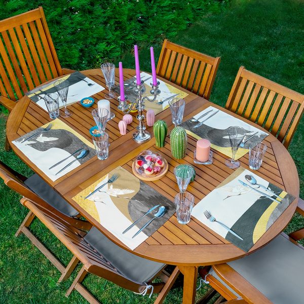 4’lü Renkli Zeminli Onedraw Çizimli Ağaç Desenli Amerikan Servis Seti