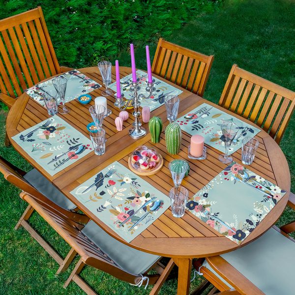 6’lı Yeşil Zeminli Çiçek Tasarımlı Servis Altlığı & Supla