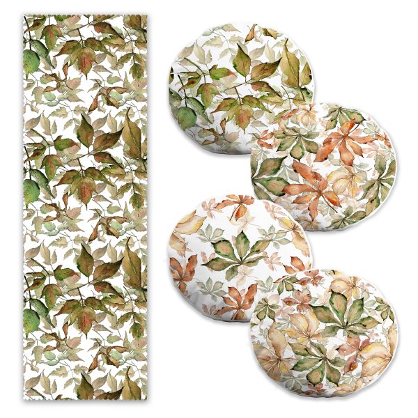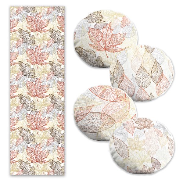 Renkli Sonbahar Yaprakları 4 Yuvarlak Kırlent Kılıfı ve 1 Runner Seti