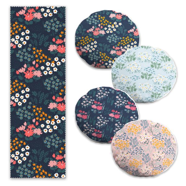 Rengarenk Çiçek Bahçesi Tasarımlı 4 Yuvarlak Kırlent Kılıfı ve 1 Runner Seti