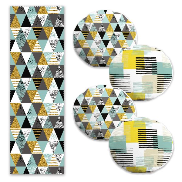 Üçgen Geometrik Şekiller 4 Yuvarlak Kırlent Kılıfı ve 1 Runner Seti