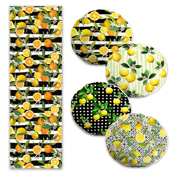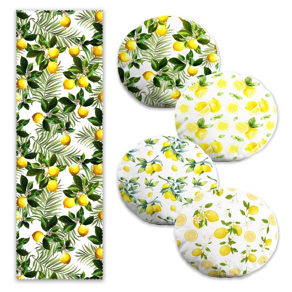 Limon Motifli 4 Yuvarlak Kırlent Kılıfı ve 1 Runner Seti