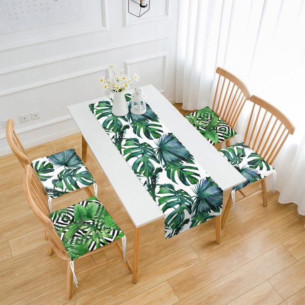 Soyut Renkli Tropik Yaprak Çizimli 4 Pofuduk Sandalye Minderi ve 1 Runner Seti