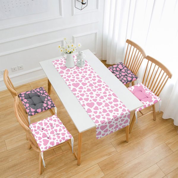 Özel Tasarım Pembe Kalpli Aşk Temalı 4 Pofuduk Sandalye Minderi ve 1 Runner Seti