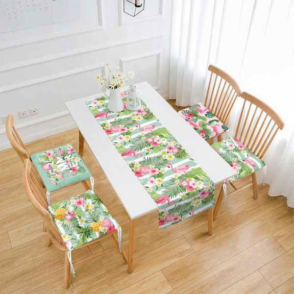 Yeşillik İçinde Flamingo Tasarımlı 4 Pofuduk Sandalye Minderi ve 1 Runner Seti