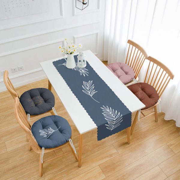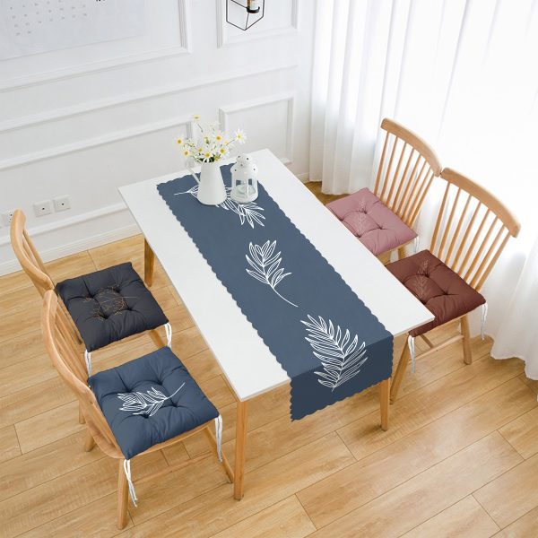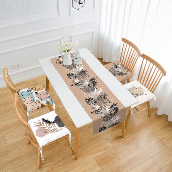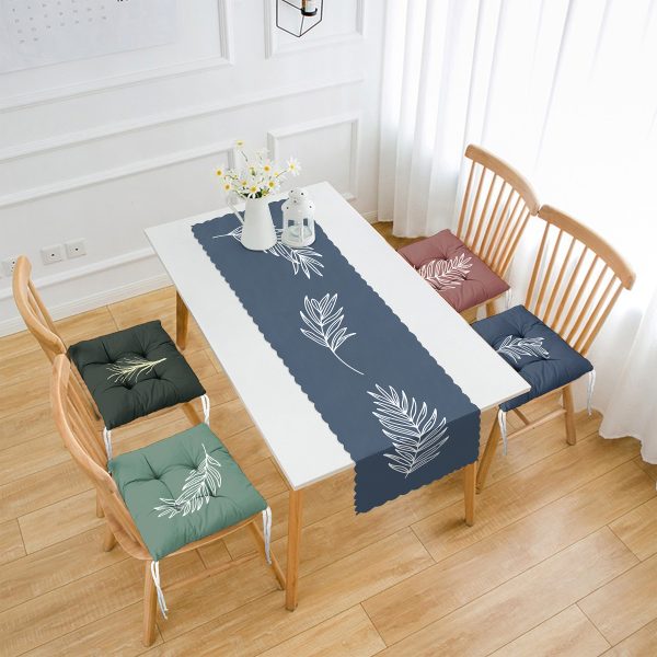 Yaprak Motifli 4 Pofuduk Sandalye Minderi ve 1 Runner Seti