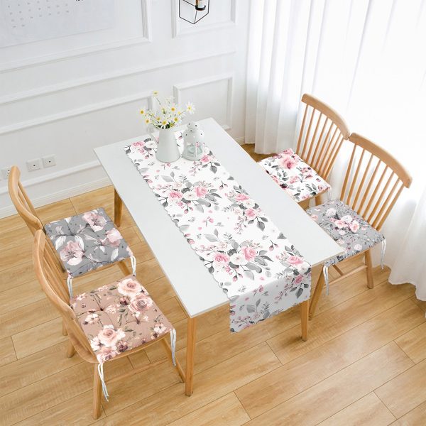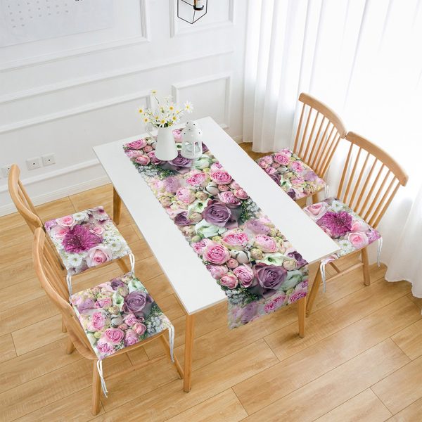 Renkli Gül Tasarımlı 4 Pofuduk Sandalye Minderi ve 1 Runner Seti