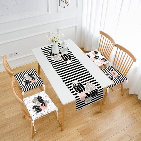 Çizgili Kaktüs Tasarımlı 4 Pofuduk Sandalye Minderi ve 1 Runner Seti