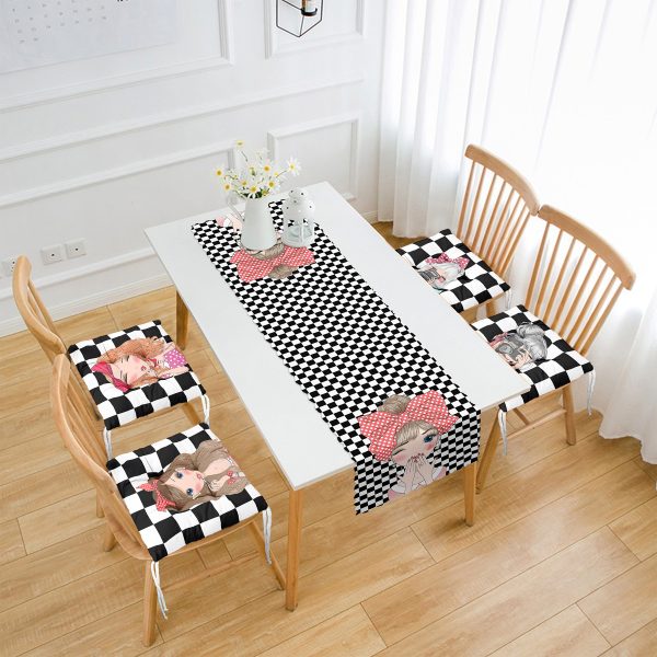 Dama Zeminli Fashion Girl Tasarımlı 4 Pofuduk Sandalye Minderi ve 1 Runner Seti