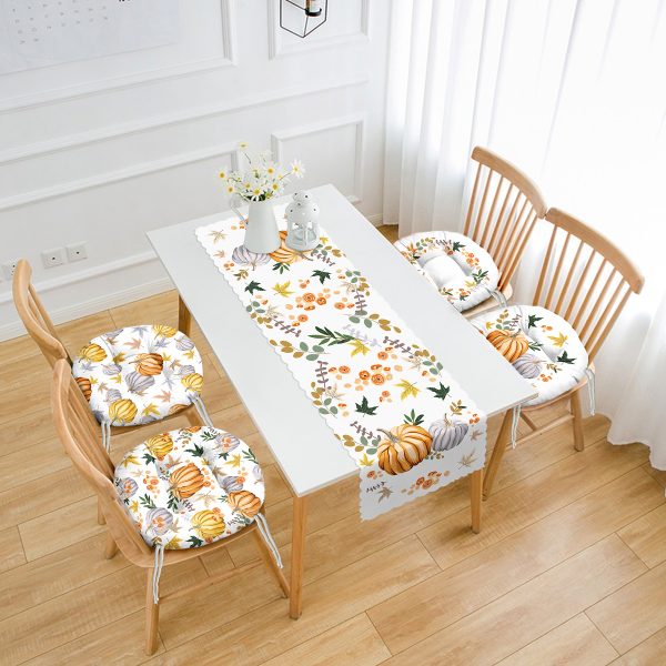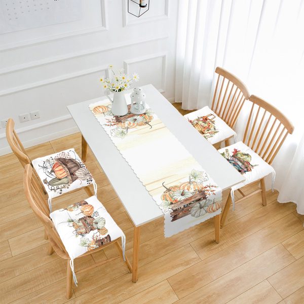 Sonbahar Temalı Kabak Motifli 4 Pofuduk Sandalye Minderi ve 1 Runner Seti