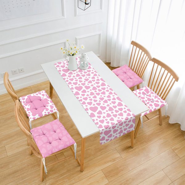 Sevgililer Günü Konseptli Özel Tasarım 4 Pofuduk Sandalye Minderi ve 1 Runner Seti