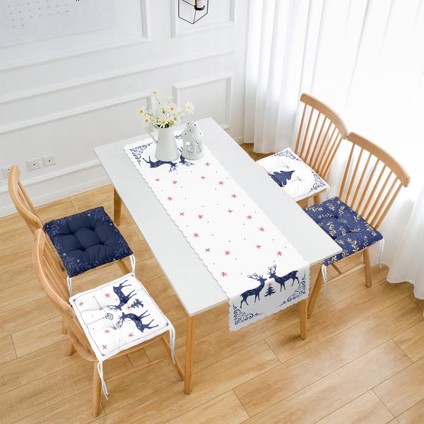 Lacivert Renkli Yılbaşı Temalı 4 Pofuduk Sandalye Minderi ve 1 Runner Seti