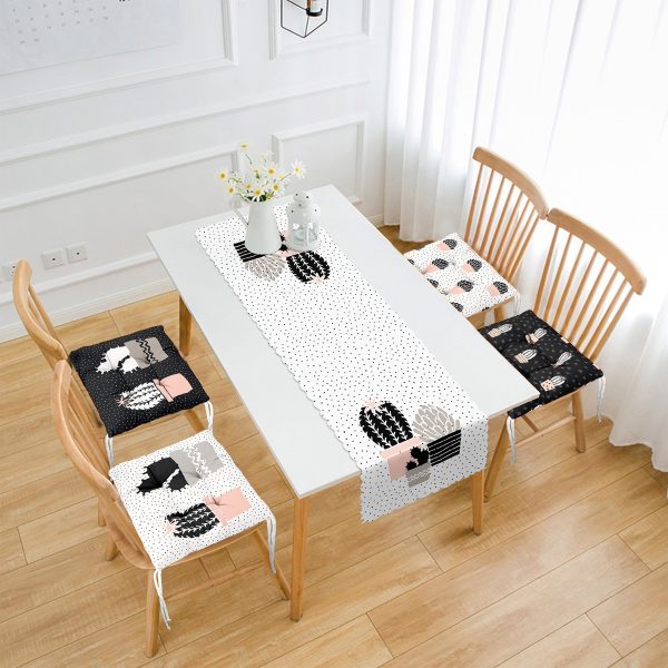 Kumlama Zemin Kaktüs Motifli Dijital Baskılı 4 Pofuduk Sandalye Minderi ve 1 Runner Seti