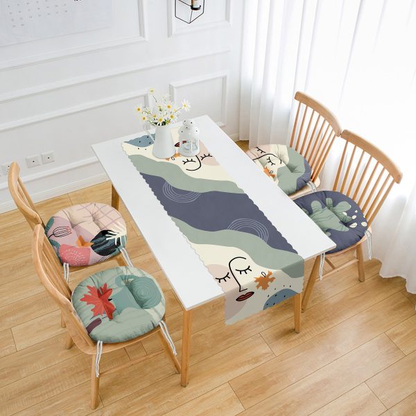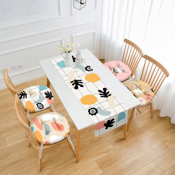 Soyut Renkli Özel Tasarım 4 Yuvarlak Pofuduk Sandalye Minderi ve 1 Runner Seti
