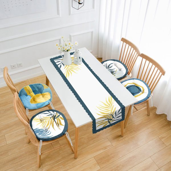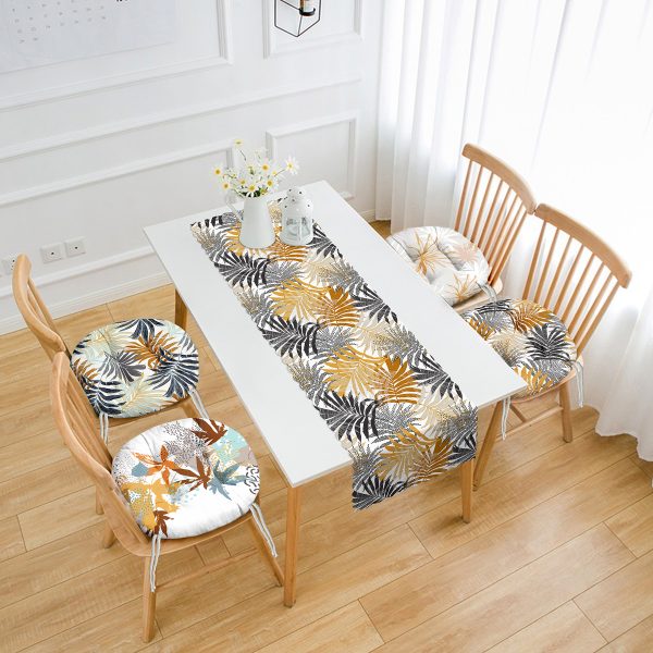 Tropik Sonbahar Yaprak Tasarımlı 4 Yuvarlak Pofuduk Sandalye Minderi ve 1 Runner Seti
