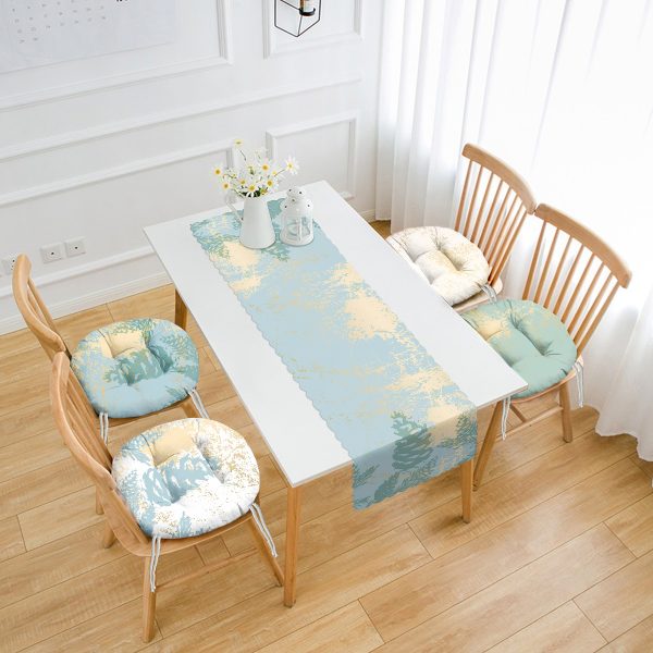 Kış Temalı Çam Ağacı Tasarımlı 4 Yuvarlak Pofuduk Sandalye Minderi ve 1 Runner Seti