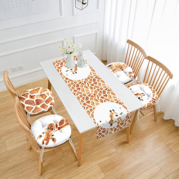 Zürafa Özel Tasarımlı 4 Yuvarlak Pofuduk Sandalye Minderi ve 1 Runner Seti