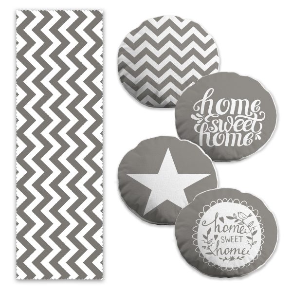 Gri Renklerin Şıklığı 4 Yuvarlak Kırlent Kılıfı ve 1 Runner Seti