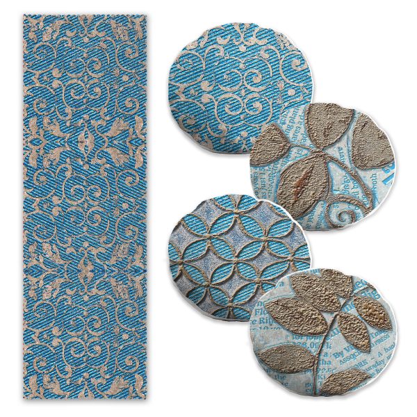 Mavi Damask Tasarımlı 4 Yuvarlak Kırlent Kılıfı ve 1 Runner Seti