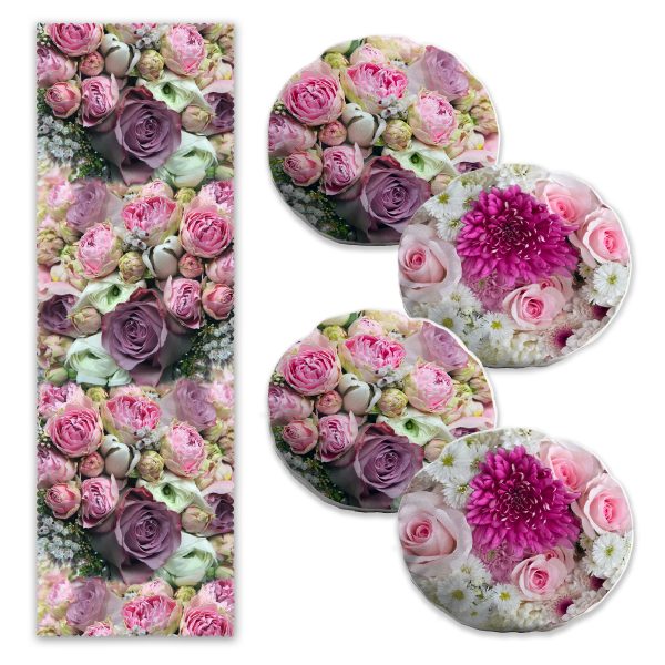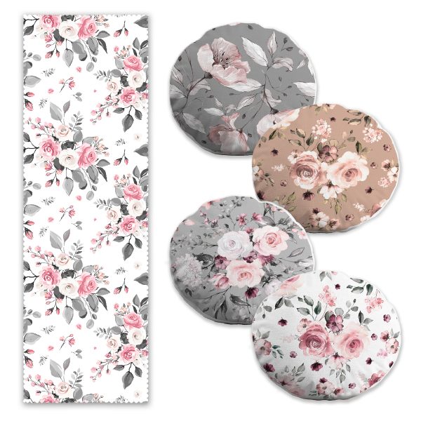 Gül ve Papatya Motifli 4 Yuvarlak Kırlent Kılıfı ve 1 Runner Seti