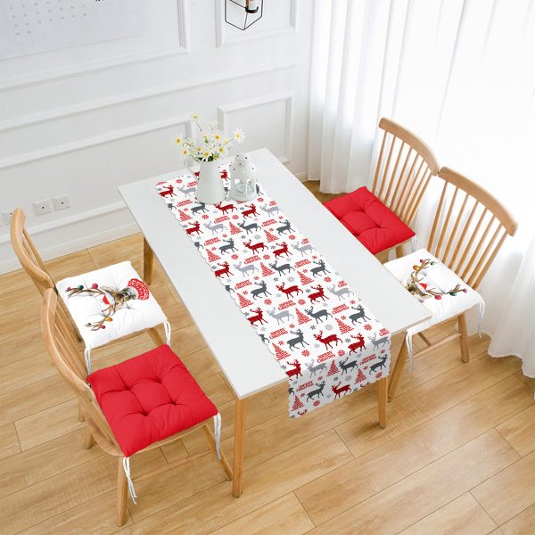 Mery Christmas Geyik Motifli 4 Pofuduk Sandalye Minderi ve 1 Runner Seti