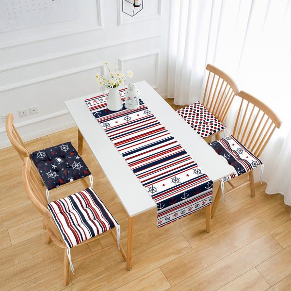 Bordo Lacivert Denizci Tasarımlı 4 Pofuduk Sandalye Minderi ve 1 Runner Seti