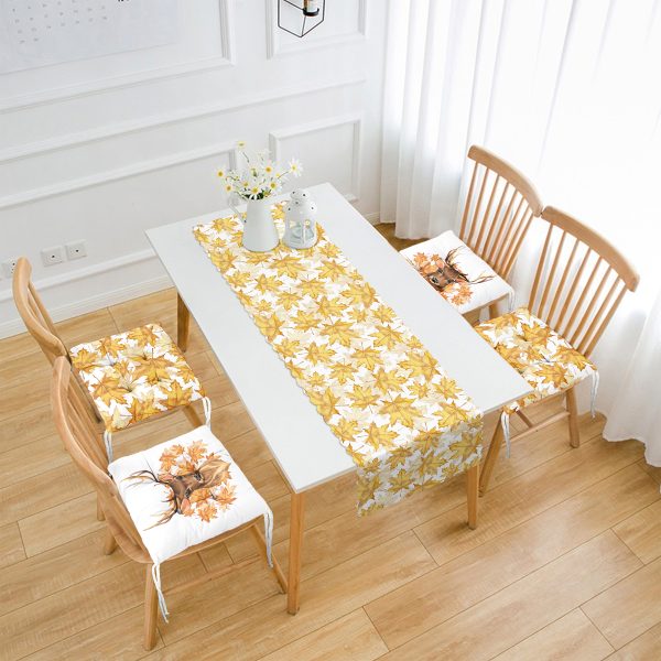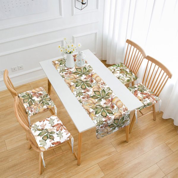 Sonbahar Temalı Yaprak Tasarımlı 4 Pofuduk Sandalye Minderi ve 1 Runner Seti