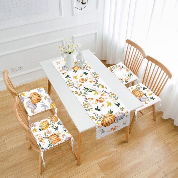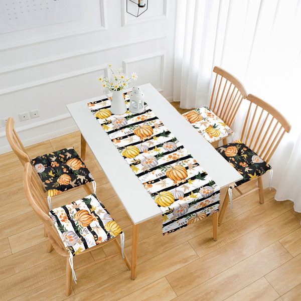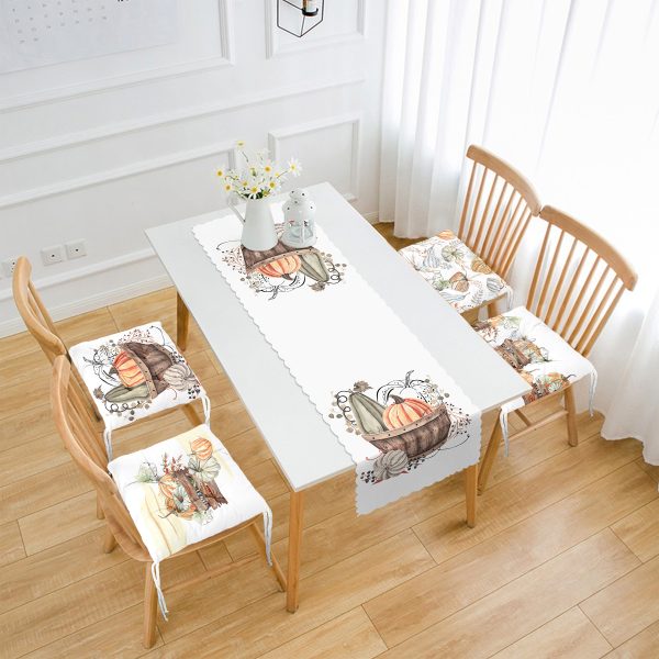 Sonbahar Temalı Kabak Motifli 4 Pofuduk Sandalye Minderi ve 1 Runner Seti